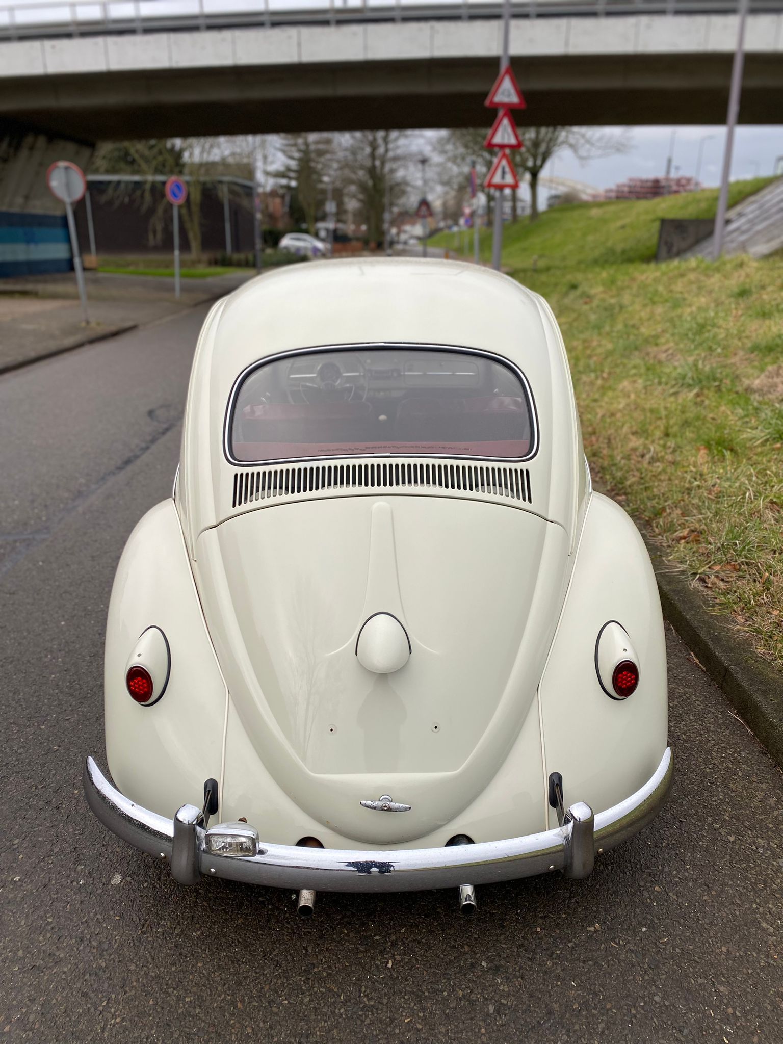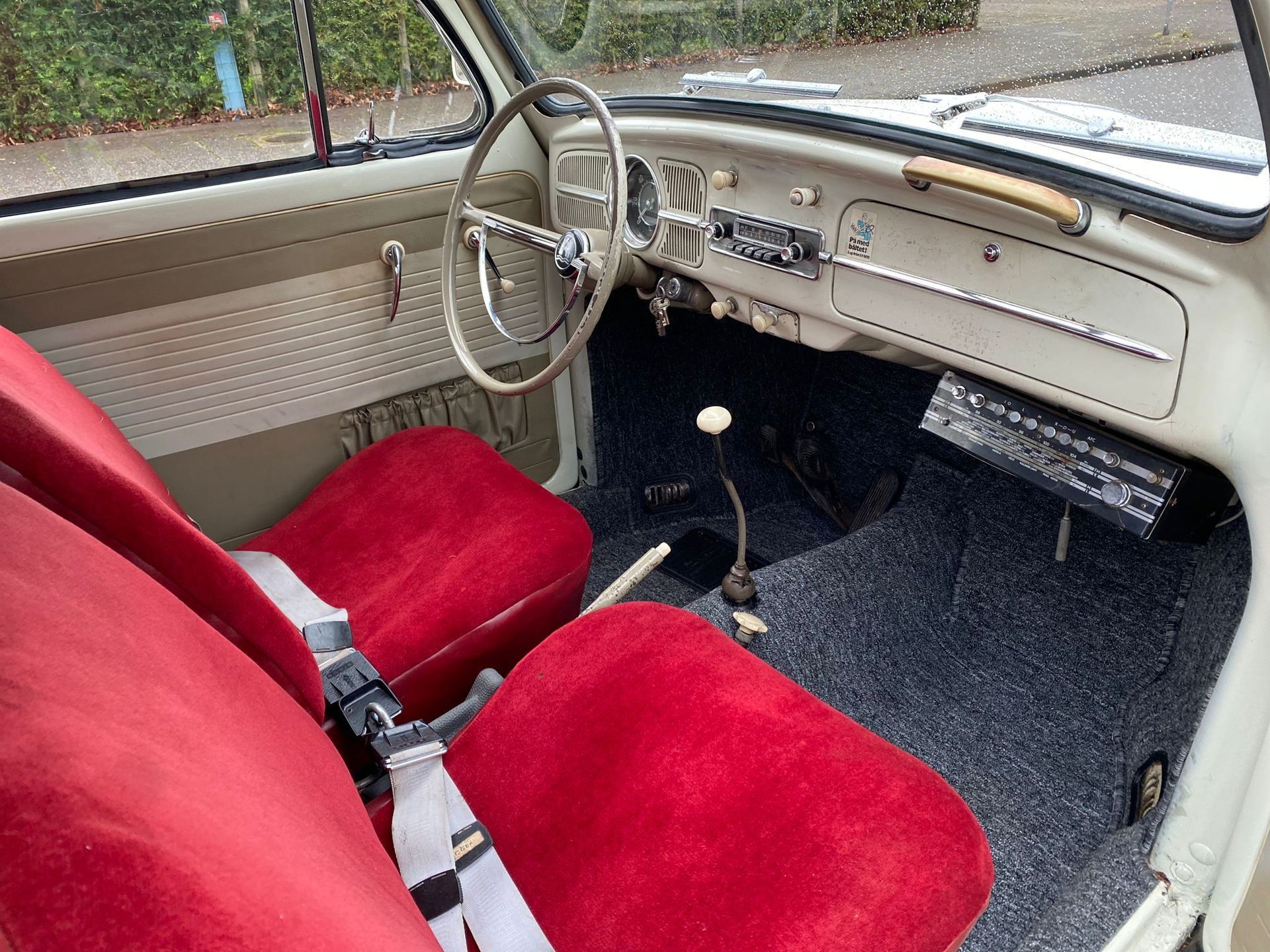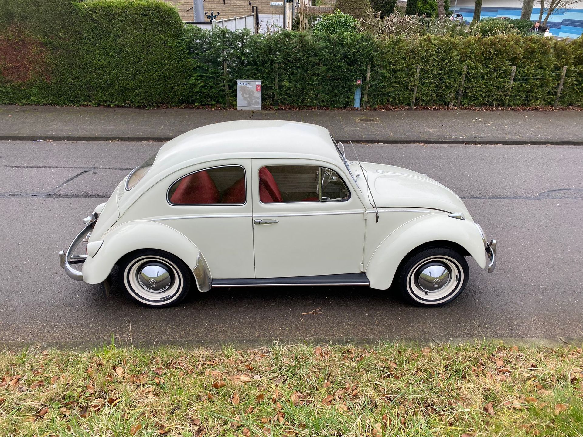 Originele hemel, prachtige radio, interieur met stoelhoezen en gordels. Ooit eens overgespoten in de originele kleur perlweiss (L87).