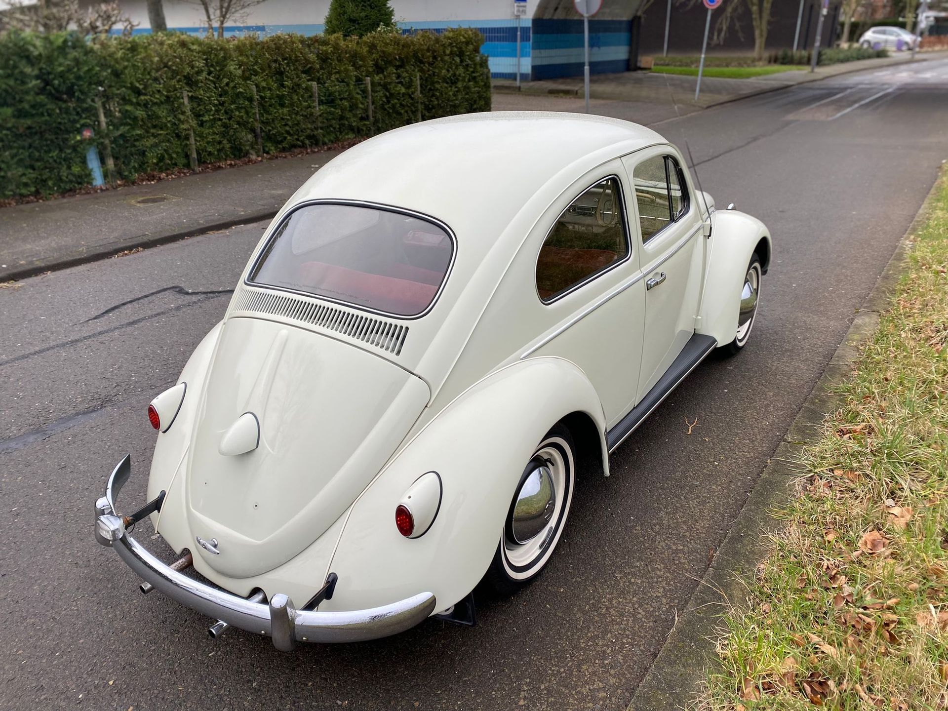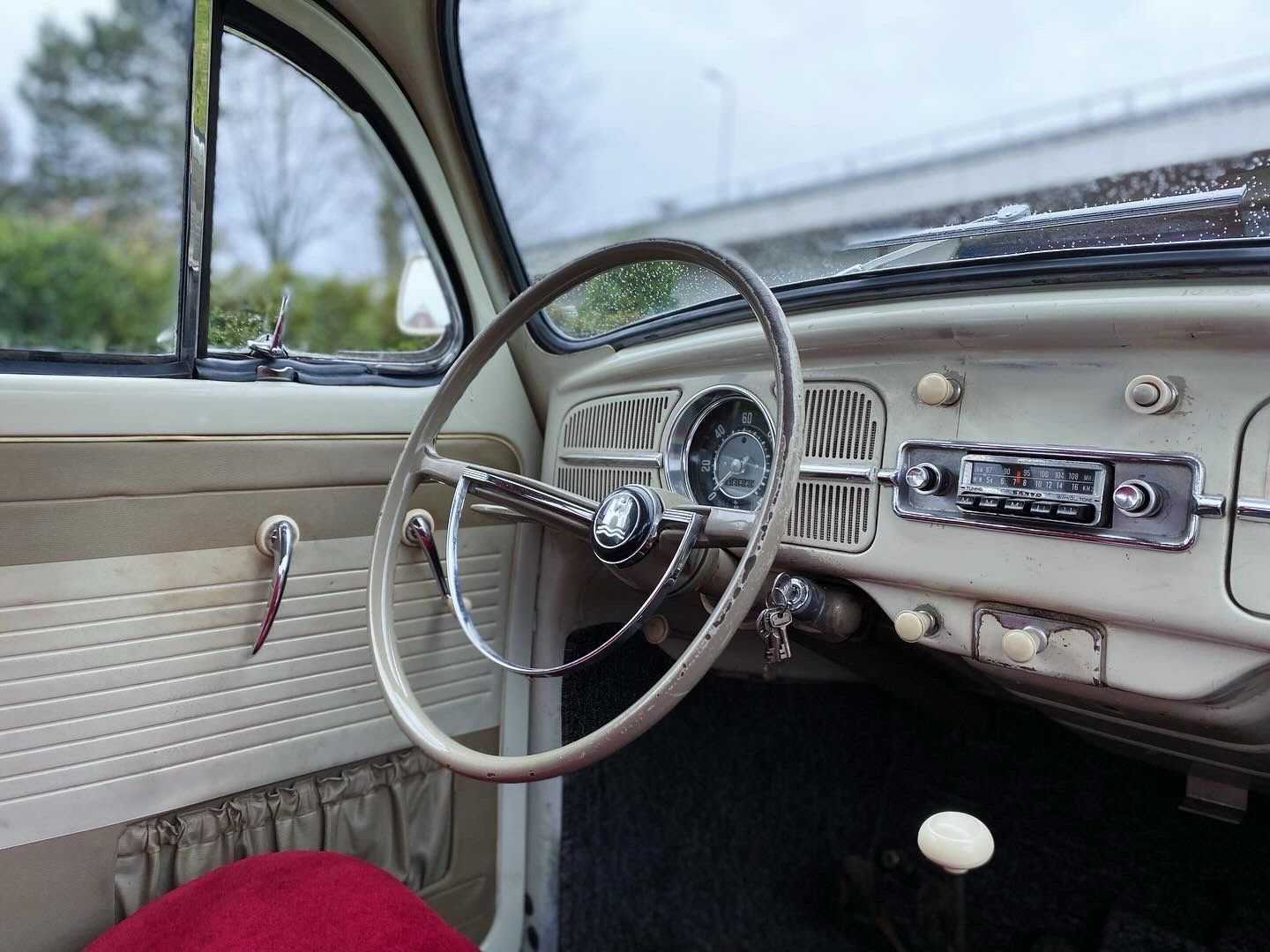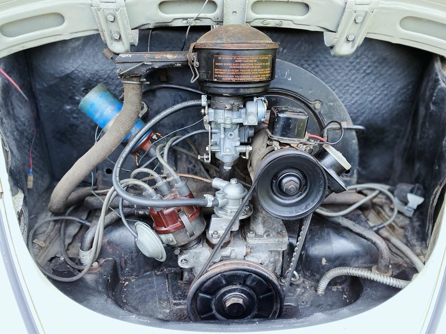 Originele hemel, prachtige radio, interieur met stoelhoezen en gordels. Ooit eens overgespoten in de originele kleur perlweiss (L87).